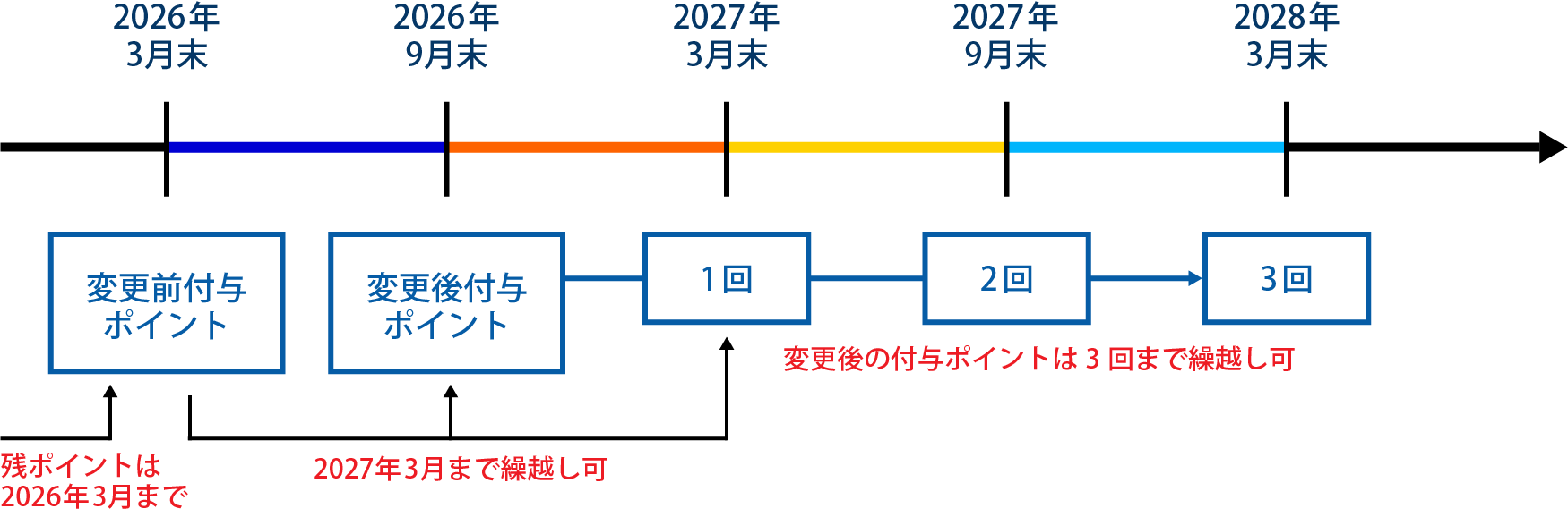 - (注2)2026年3月以前に保有していた残ポイントは2026年3月末日に進呈されるポイントまで繰越されます。